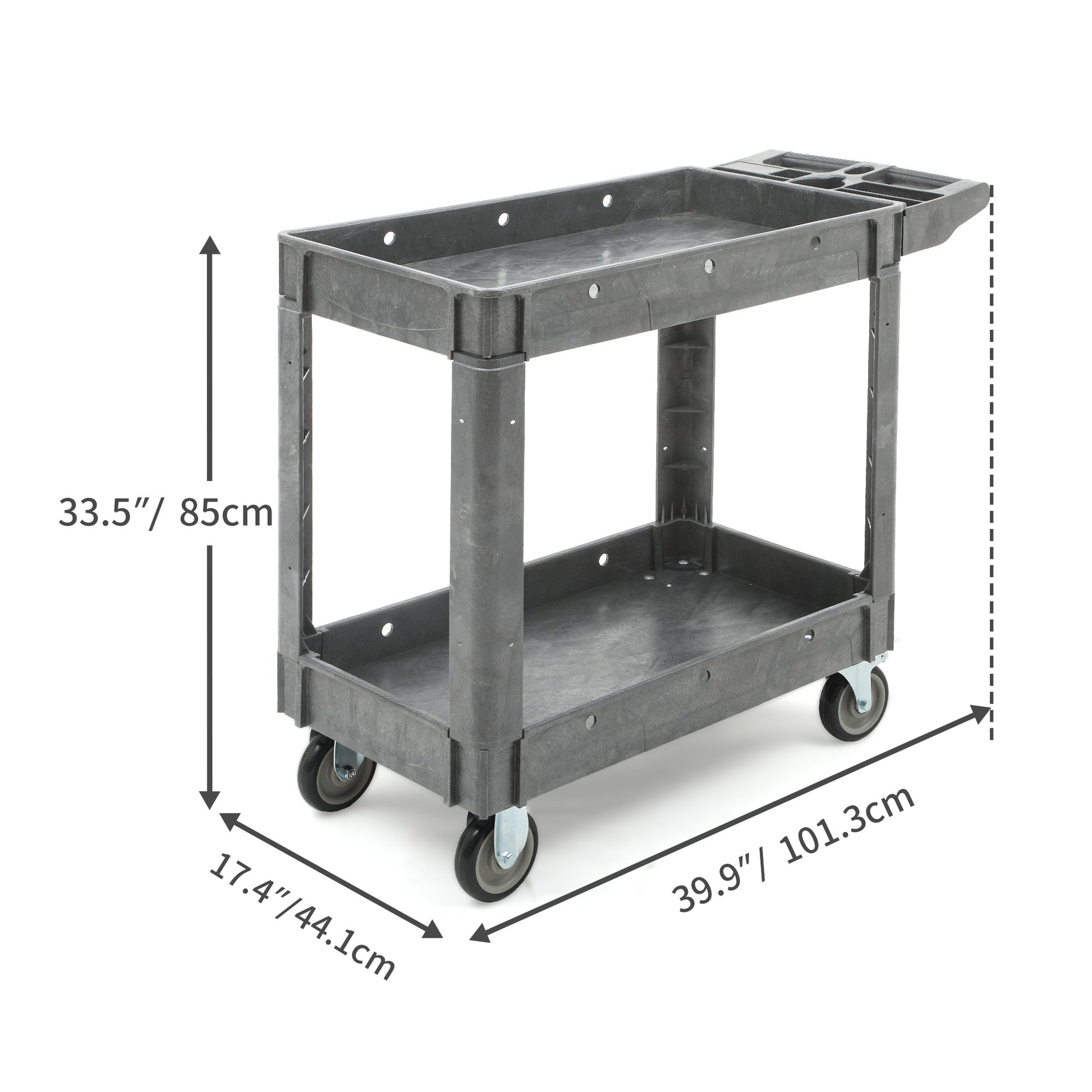 550 lbs Capacity Utility Cart 2 Shelf Rolling Storage Plastic Service Work Carts